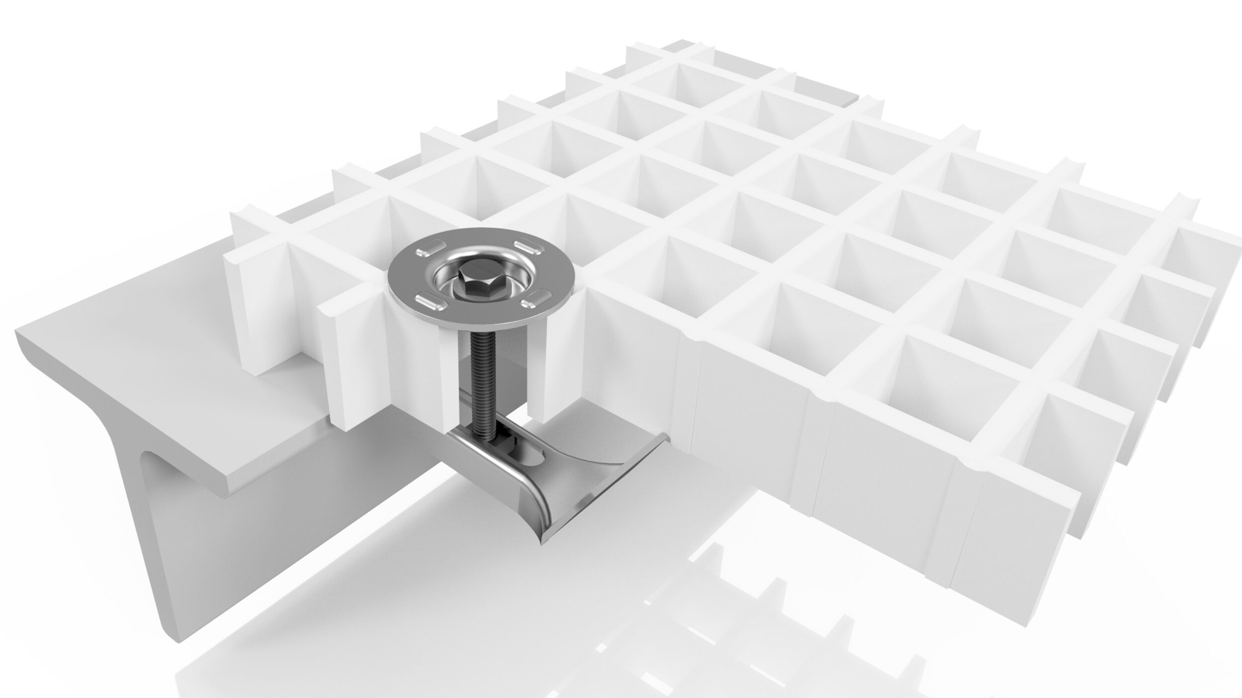 This fixing material can be used for GRP gratings with pitches of 38.1×38.1 and 40×40 mm and widths of bars of 5-7 mm. According to BG regulations, only permissible if an additional Safety lock is provided on site.